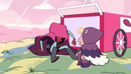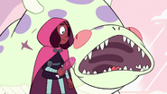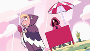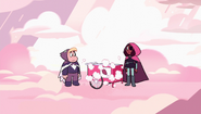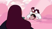 Cloud Connie developed more from her original form in "Rose's Room". However, she was still lacking her own personality throughout the episode. For the most part, she appears to be just as one-dimensional and compliant as all of the room's previous creations, obeying every order given to her by Steven as well as agreeing to do whatever he chooses to do. However, once Steven notices that she isn't exactly the Connie he knows, he tells her to "Not just do whatever I want..." which seemingly causes her to malfunction, making Steven realize that she's a replica created by the room. This is due to the paradox that arises when she is ordered not to follow orders; as a creation of the room she is bound to follow every wish by Steven and that creates an obvious conflict when he orders her to not follow orders any more. A new sinister personality emerges when Cloud Connie stops malfunctioning.