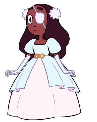 Cloud Connie takes the look of Connie Maheswaran, dark skin, long, wavy brown hair, and red-tinted glasses. Her clothing is the same as Connie's. She wears a mint-green and white dress, along with a baby blue sash, and lime green socks, as well as salmon-colored boots. She also held the red glow stick bracelet that Steven gave back to her in "Bubble Buddies".