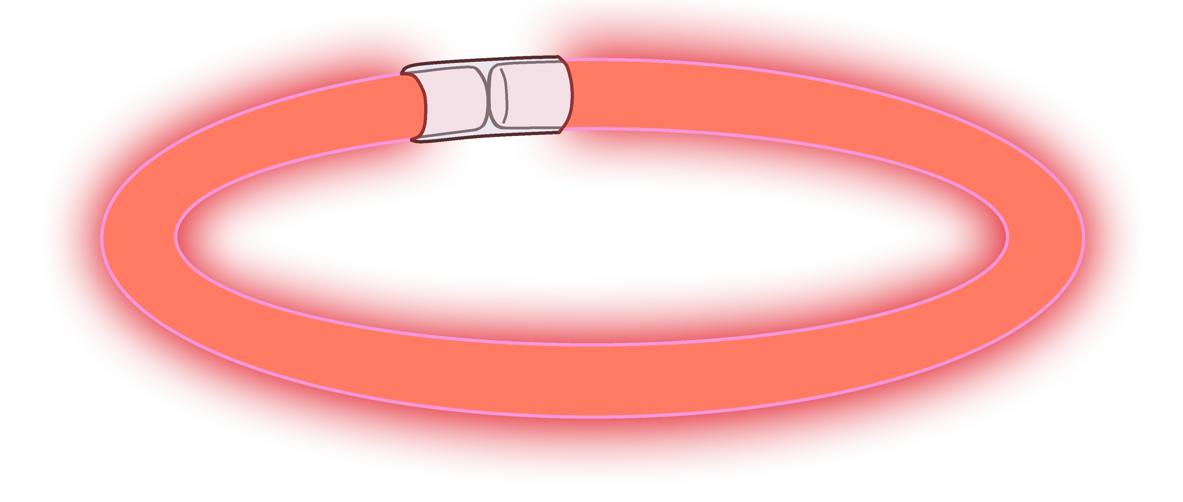 The bracelet is a neon red-orange color with two white stubs and a small clear tube to hold it together.