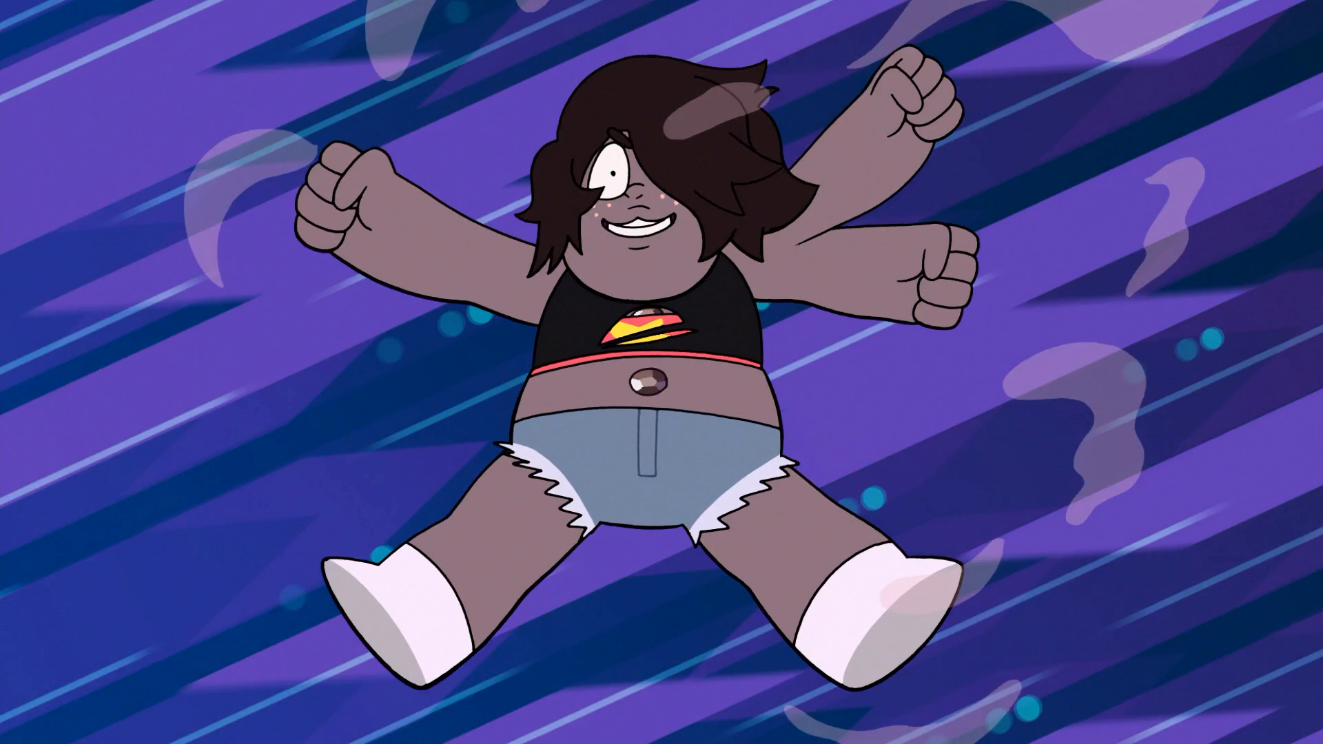 "Falling! / Smoky Quartz" is a soundtrack from "Change Your Mind " that plays when Steven chases after Ruby , Sapphire , Pearl , and Amethyst's Gemstones , which he accidentally dropped when White Diamond began attacking the Crystal Gems . As he catches Amethyst's Gemstone, he accidentally fuses with her, forming Smoky Quartz .