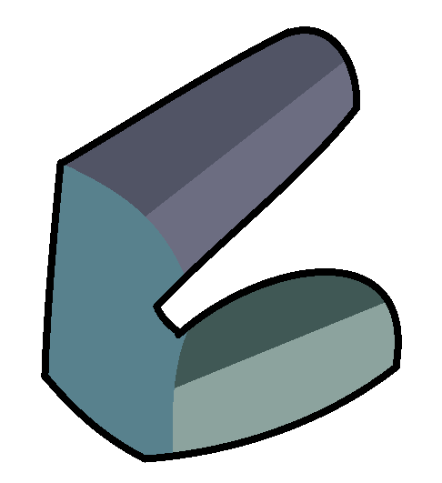 Blue Chalcedony's gemstone is located somewhere within her central disc. It is shaped like an icosahedron, with spikes at each point of a triangle-shaped facet. | "Arcade Mania" |