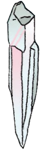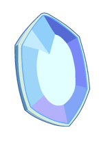 Pearl's gemstone is located in the center of her forehead. The gemstone is smooth with no facets. As seen when she is regenerating in "Steven the Sword Fighter", it has a light blue ring around the edge which is usually hidden inside Pearl's forehead. | |