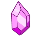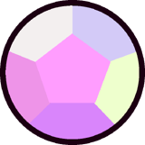 All real Rose Quartzes shown have this pink gemstone with a featured pentagonal facet. It resembles Rose Quartz's gemstone due to her, as Pink Diamond, repositioning it to make it look like another gemstone. As seen in "That Will Be All", they all have light pink rings around the edges, usually hidden inside the bodies of various Rose Quartzes. | |