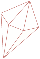 Padparadscha's peach-colored gemstone is located on the back of her right hand, featuring a triangular facet. The front and back are symmetrical. It is an octahedron, specifically a truncated trigonal dipyramid. | "Off Colors" |