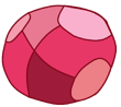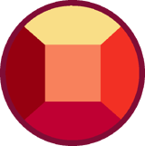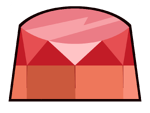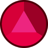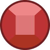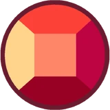 All Rubies shown have one of these two red gemstones. They both have a square facet. They also have a light red ring around the edge (normally hidden inside the Gem's body) and is flatter on the back. Other than the Crystal Gems' Ruby and the members of the "Ruby Squad," minor Rubies in "The Answer" and "Together Alone" also have this gemstone. | "Eyeball" has her gemstone where her left eye would be.