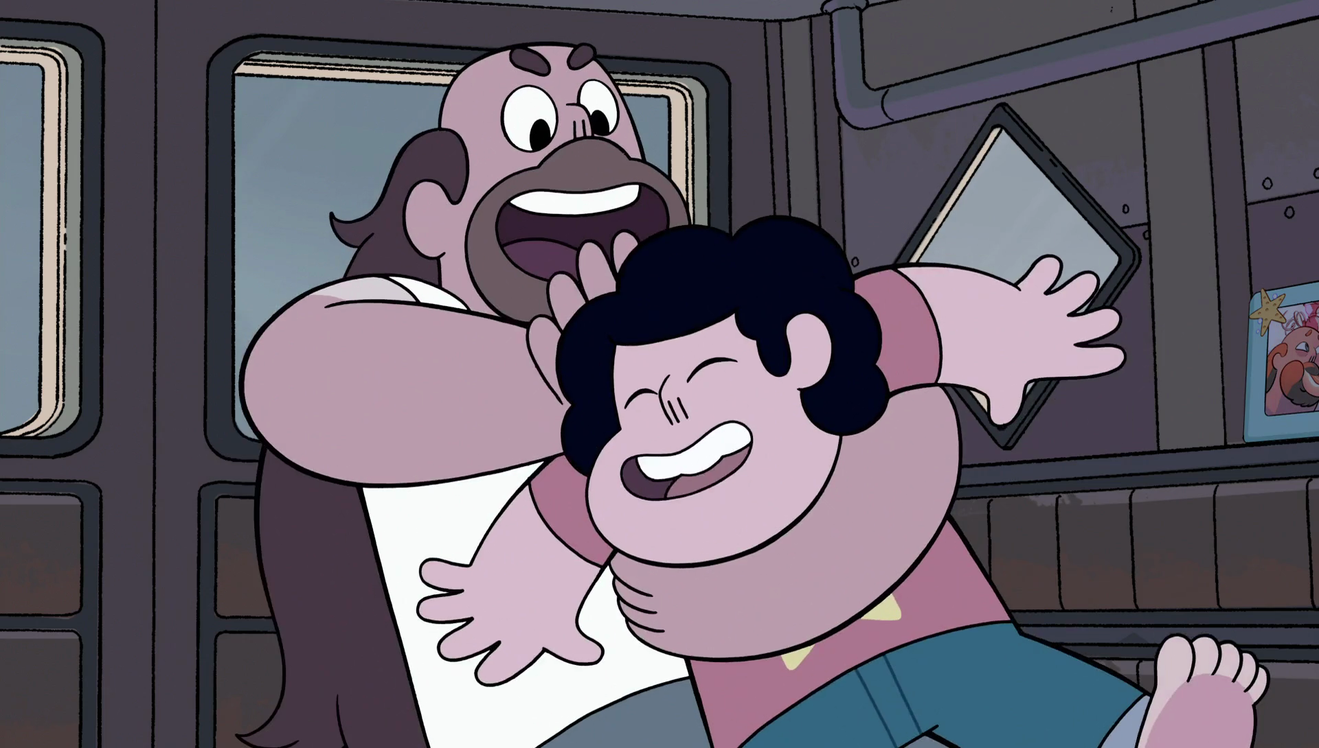 After Steven finally returned home in "Lars' Head", Greg becomes glad that Steven is back before he runs up to hug him along with the Gems and Connie.