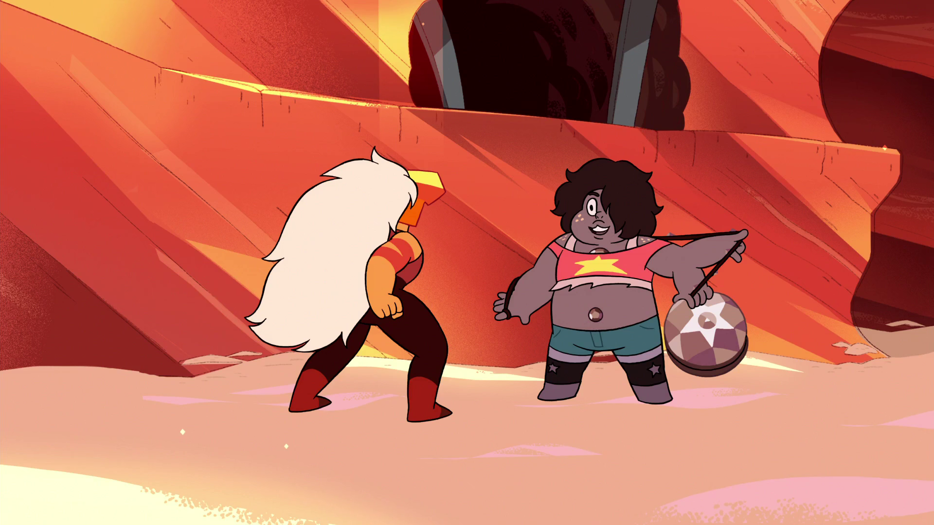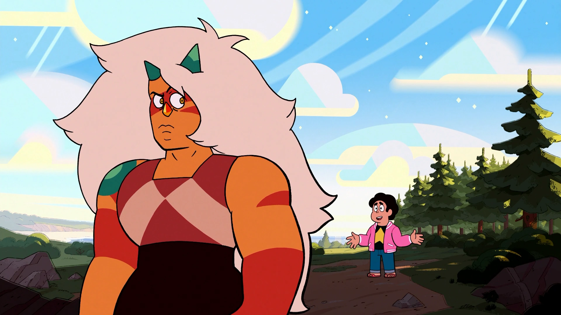 In "Little Homeschool", Steven heads into the forest outskirts of Beach City to visit Jasper, the latter having chosen to make her home in solitude after being uncorrupted. While not bearing any hostility toward him, Jasper still bears some animosity toward Steven, making it clear that he is not her Diamond and that he'll have to fight her if he wishes to prove he can lead her as one. Steven, frustrated at Jasper's lack of cooperation, obliges at her request, and the two engage in combat.