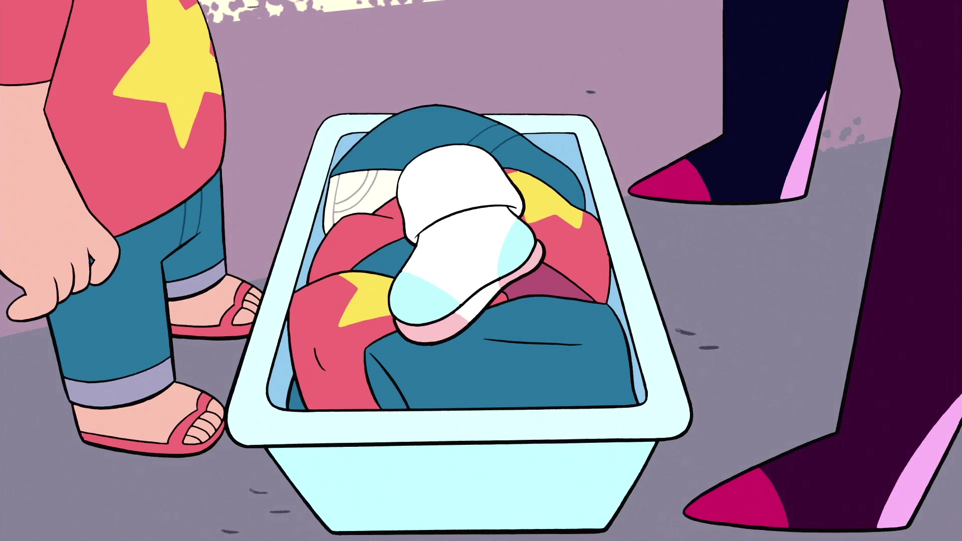 Back at the Crystal Temple's hand, Steven warps to do his laundry and finds Garnet. They discuss what they saw in Kindergarten, and Garnet expresses disgust over the forced fusions. Garnet states that fusion is a choice between Gems, and that fusion is a right, and the forced fusions they saw in Kindergarten were not true fusions. Steven asks Garnet what it feels like to be a fusion all the time, like Garnet herself. She explains that the Gems forget that they were ever alone in the first place. When Gems fuse, they do not feel like two people, but rather one, and the Gems' old names might as well be names for the left arm and the right arm. When Steven asks if Garnet disappears when Ruby and Sapphire unfuse, she says that Garnet is the embodiment of Ruby and Sapphire's love. Even if they split apart, Garnet will always exist in them. The strength of the two Gems' love keeps the fusion alive for a very long time, explaining Garnet's long existence. After one of Steven's socks flies away with the wind, Garnet catches it and gives it to him, saying, "You don't want to break up a pair.". Steven agrees, saying they belong together as he hands Garnet a red sock with the same pattern. She makes up the socks and drops them in the basket with Steven's other clothes.