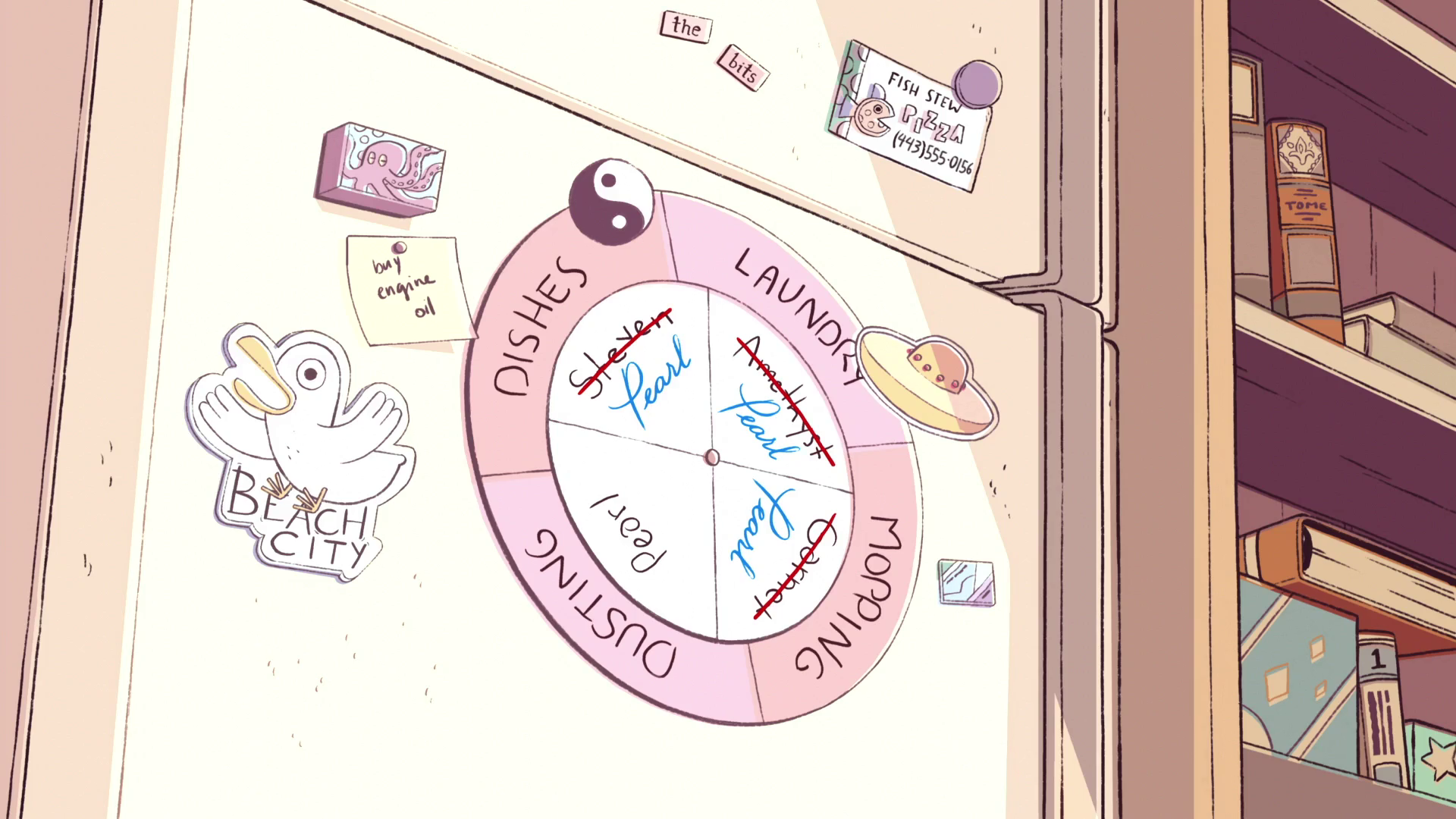 The episode begins with the Crystal Gems helping Steven fold his laundry. They are discussing Peridot's presence on Earth, and the possibility of Peridot reactivating the Kindergarten despite crash landing on Earth. During this discussion, the Gems mention the reasoning behind gathering to fold Steven's laundry. When the failed chore wheel (failed because each name has been replaced by Pearl's) is brought up, Pearl admits she is to blame as she enjoys doing housework. Steven hints that Garnet should unfuse so Ruby and Sapphire could help fold his shirts faster. Garnet explains that Ruby and Sapphire would love to see him, but she refuses to unfuse for laundry. The Gems continue discussing the Peridot problem. Garnet believes that Peridot isn't interested in the Crystal Gems, but rather the Kindergarten to reactivate the injectors. Steven asks what the injectors are, and Pearl explains that the injectors are machines that plant Gems in the crust of the Earth for them to incubate and suck the life out of the ground. For a moment after the explanation, Amethyst appears distinctly uncomfortable. The Gems then decide to just go and investigate for themselves, as Steven continues to work on his laundry. However, he brightens considerably when the Gems tell Steven he's coming too.