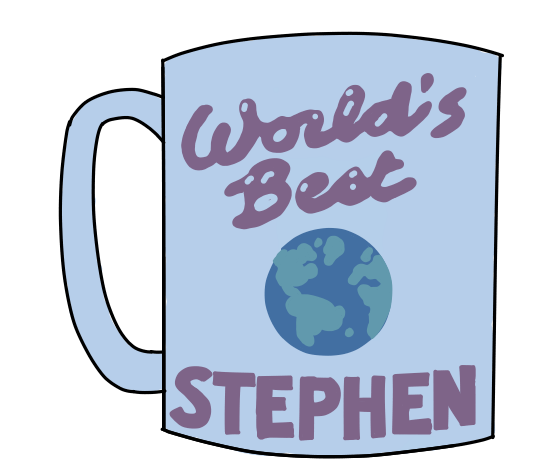 Steven's mug is a white mug with a picture of Earth and the caption "World's Best Stephen". In its only appearance in "Catch and Release", wherein Steven holds it while talking with the Gems about what to do with Peridot, who has confined herself to the Beach House's bathroom.