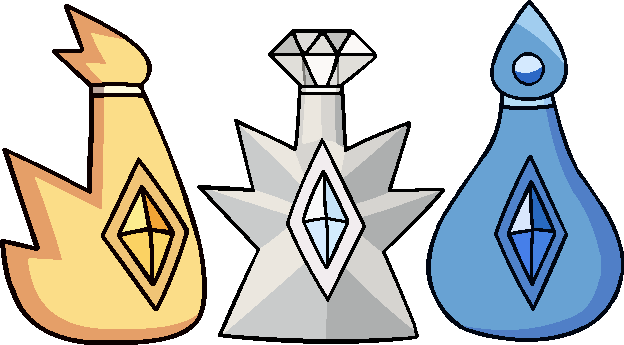 The Diamond Aura Bottles are three vessels stored inside the medicine cabinet in Steven's bathroom, each one containing the aura of a different Diamond. They made their debut in the episode "Little Homeschool", where Steven uses them along with his aura spit to heal Cherry Quartz. They were all used up in "Fragments" when Steven used them to heal Jasper's shattered gemstone.