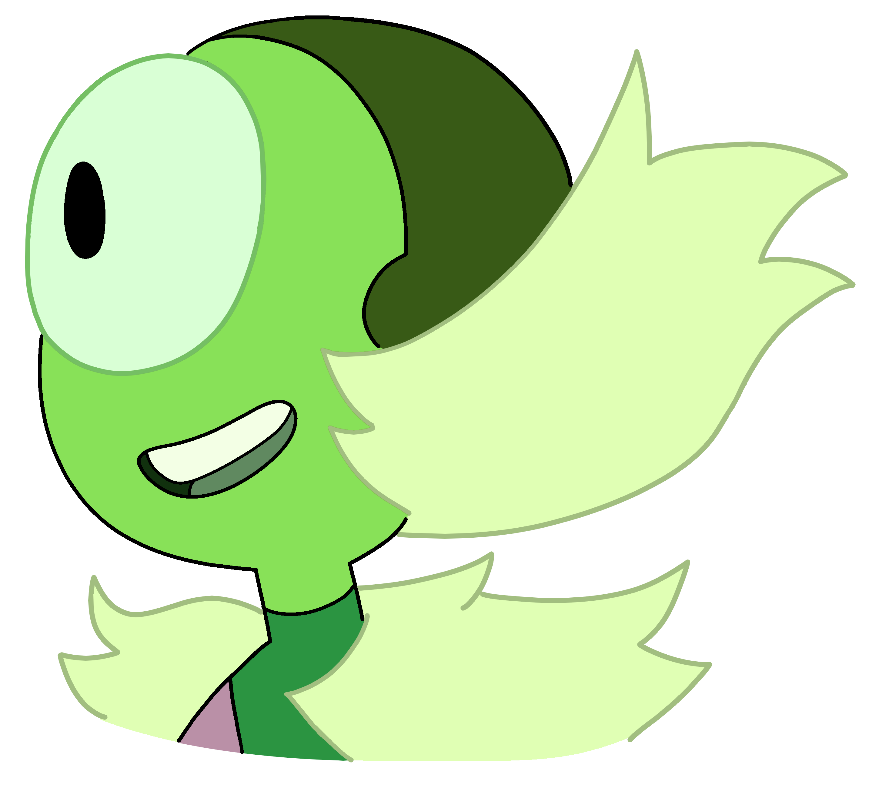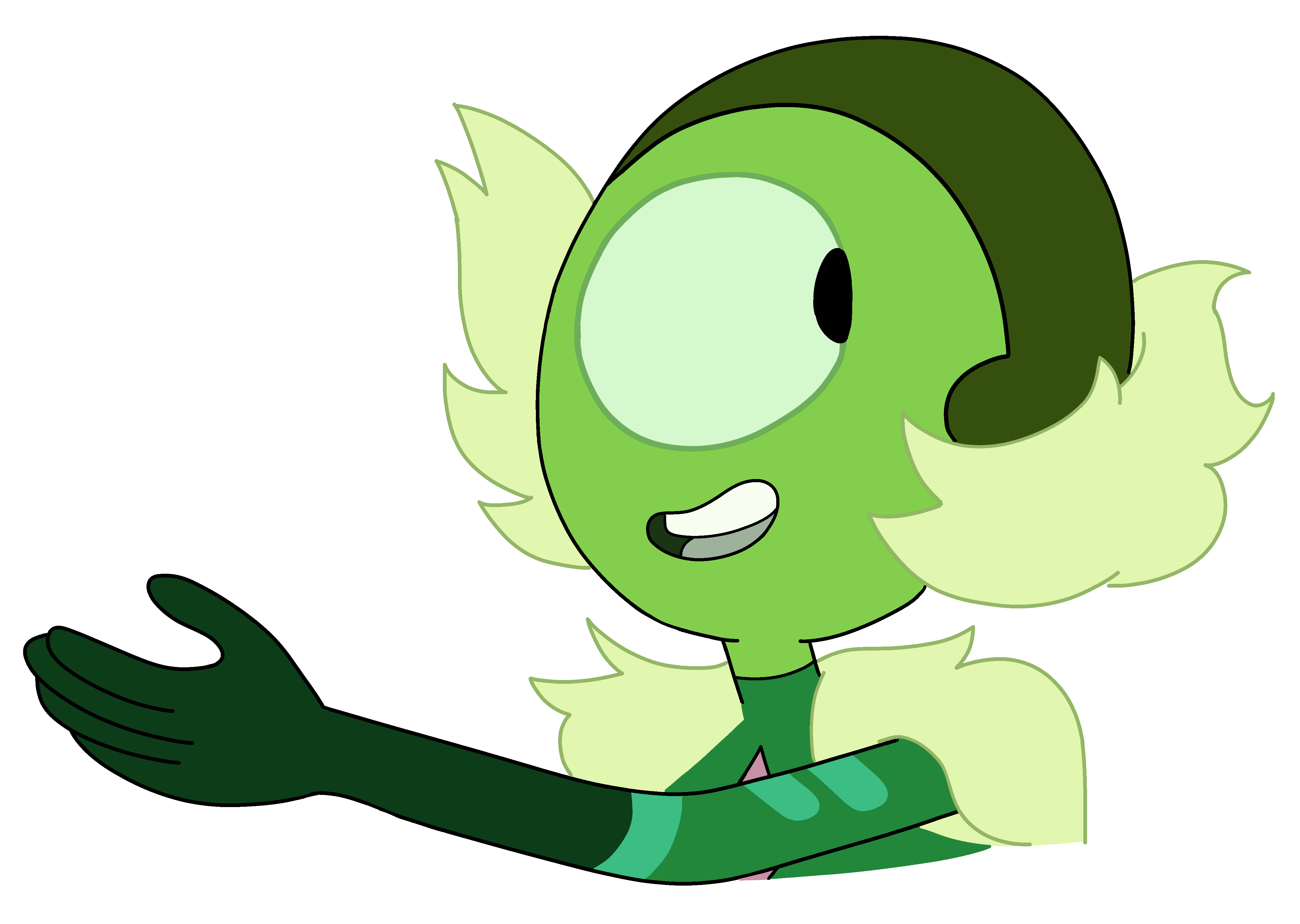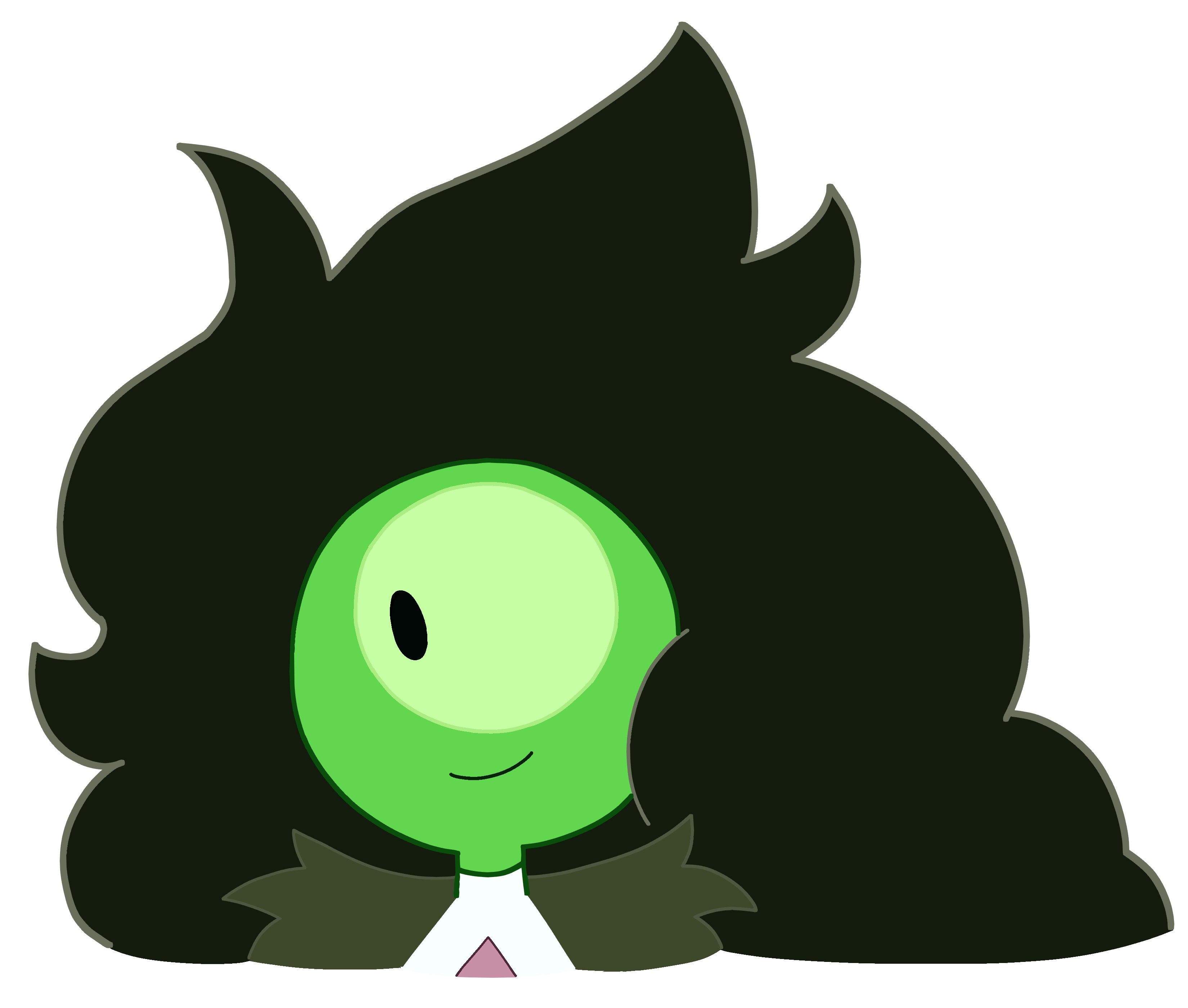 Nephrite has dull green skin, a black eye with a very light yellow-green sclera, and black hair. | Not much is known about her, but seen in "Guidance", she has perfectionist tendencies, and seen in "A Very Special Episode" she appears to have a playful personality. Has also appeared in "Homeworld Bound" when she's on Aubergine Pearl's tour, and in "Everything's Fine" playing baseball with Amethyst and some other gems. |