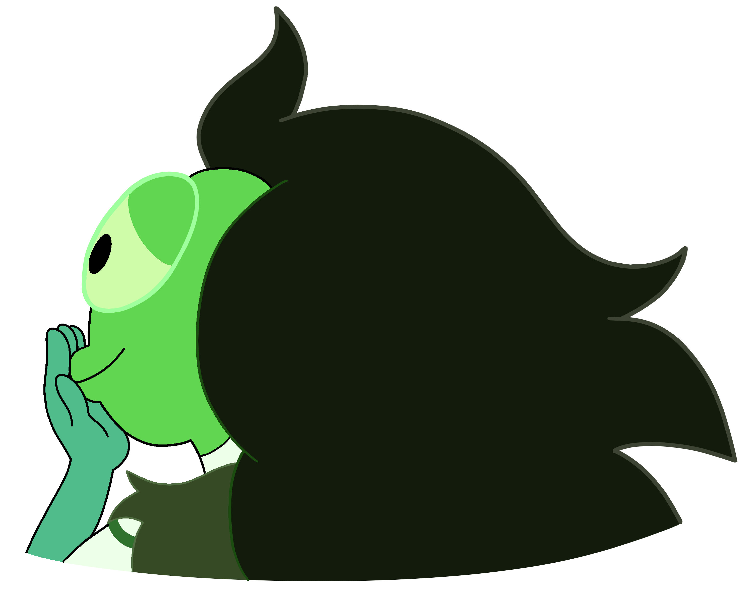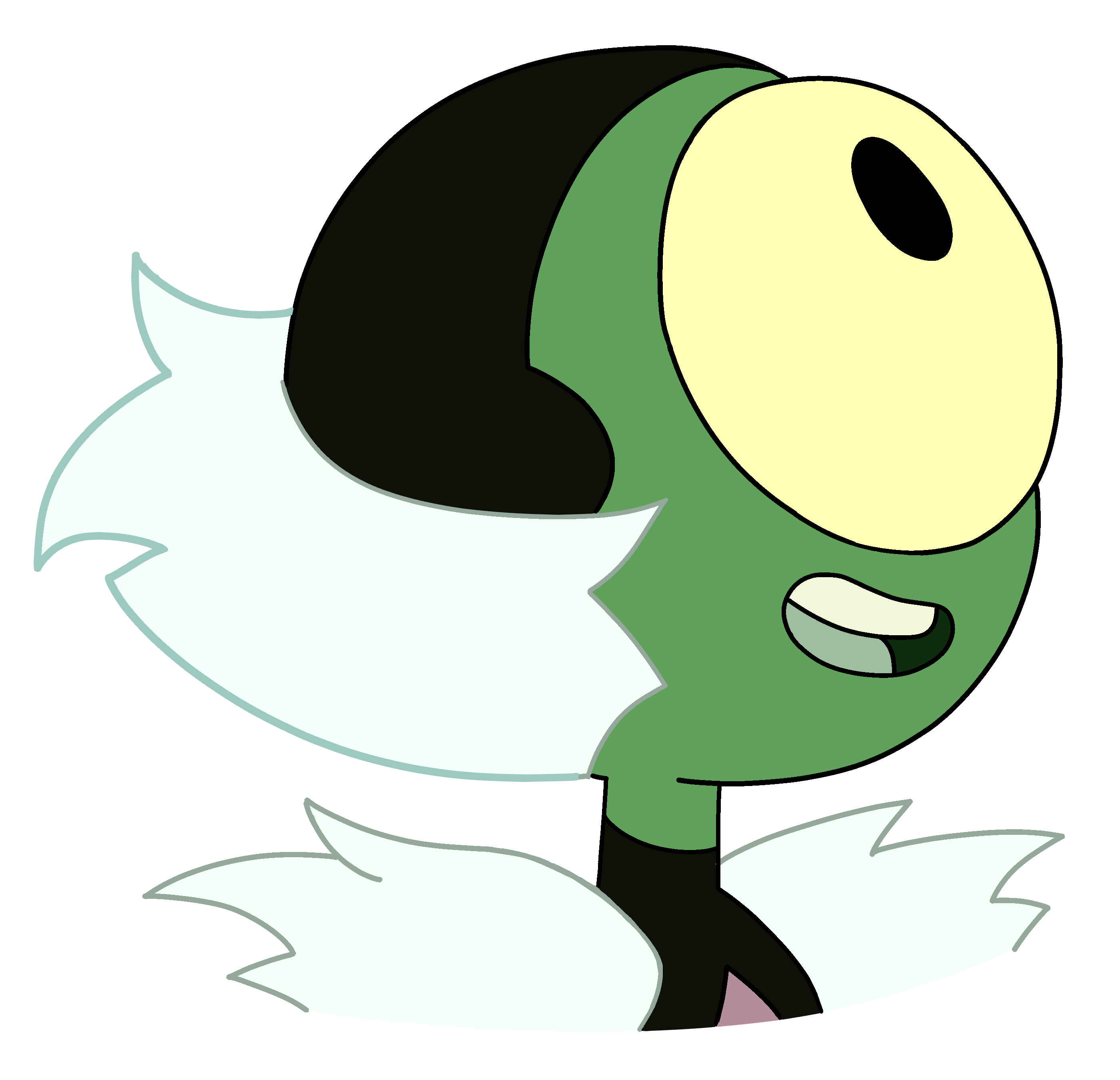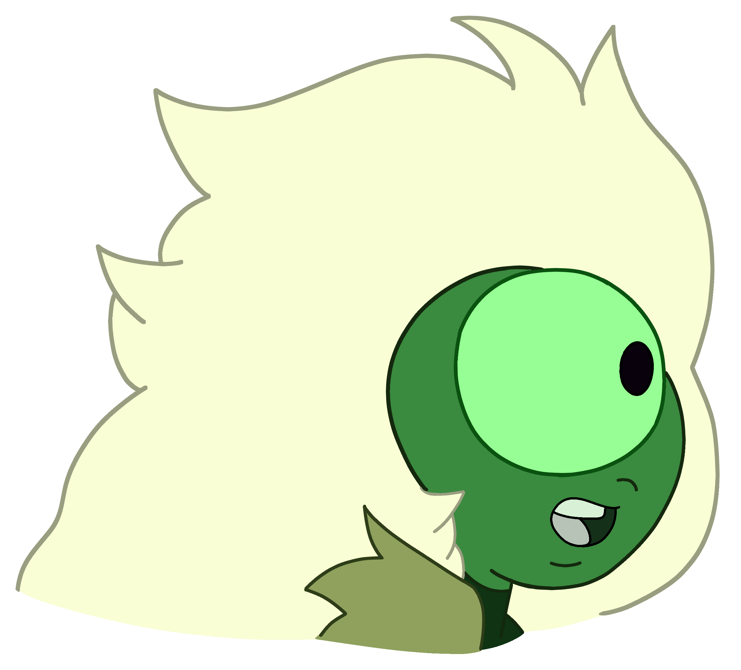 Nephrite has apple green skin, a black eye with a very light yellow-green sclera, and very dark yellow-green hair. |