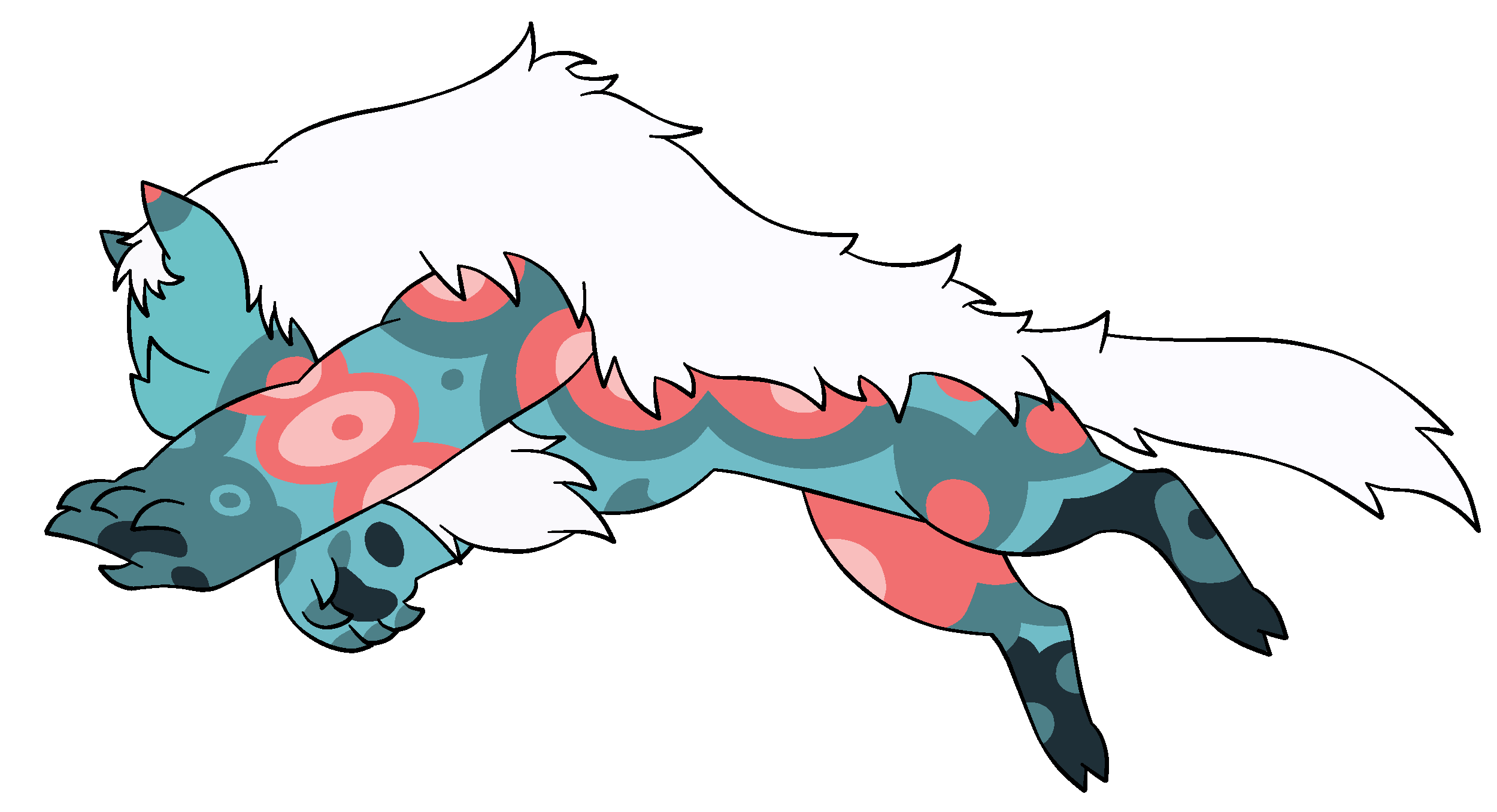 While corrupted, Ocean Jasper is a giant wolf-like creature with two horns. She has a mixture of teal colors, with coral spots across her body.
