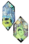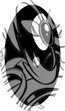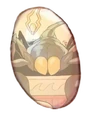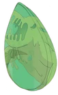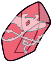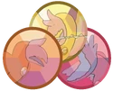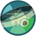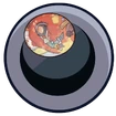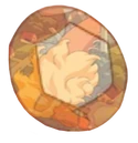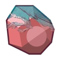 The Rainbow Cloud Monster's gemstone is located on the center of her body, acting as an eye. It is circular and is mostly cool gray and black, with it having a circular indent that reveals its jagged light orange interior.