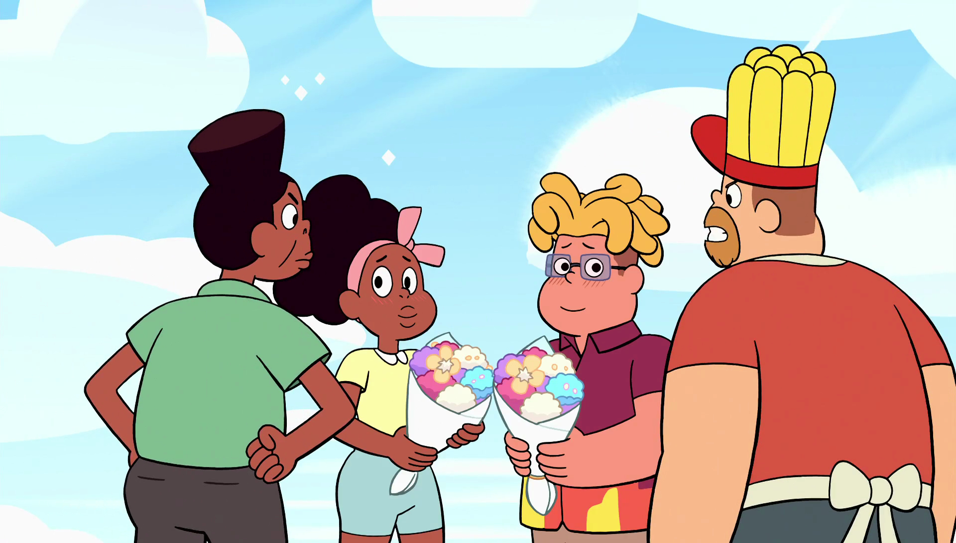 - [09:49] The stool Amethyst stands on when she and Steven were cooking disappears when Kofi and Mr. Fryman approach Steven to ask him to close down his restaurant.