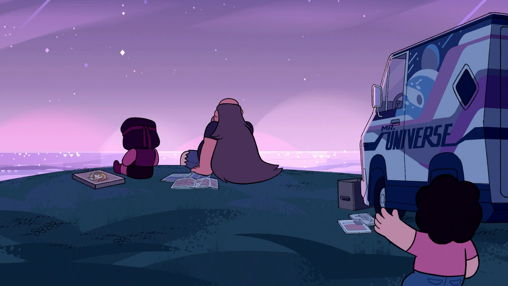 Steven and Amethyst travel around Beach City in search of Ruby. They pass out missing flyers all around the city and soon find out that Ruby is with Greg on Brooding Hill.
