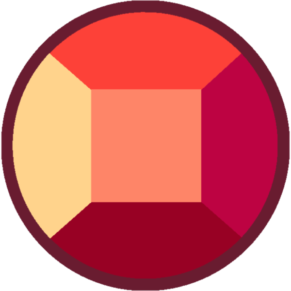 | Ruby has a rich red stone in her left palm. It has a square facet, the front and back are symmetrical, and it has a light pink ring around it, which is usually hidden within her left hand, except when regenerating. It is a decahedron, specifically a truncated tetragonal dipyramid. |