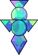 The Rutile Twins' maroon gemstone is located on their navel. The two conjoined gemstones form an inverted lowercase "Y". The shorter and longer segments of the gemstone both have their own two facets, parallel to their respective segments.