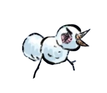The Snowbeast takes the form of a small bird made out of snowballs. Her design is resembles a snowman, having three small snowballs for a body, and has two sticks for limbs. She has two red eyes with black pupils. Her beak appears to be made of two carrots. Her gemstone is presumably inside her head, as it's only seen after being poofed.