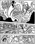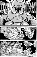 Steven and the Crystal Gems were fighting these creatures in the middle of a rocky terrain, with Onion watching while eating popcorn. Things take a sudden turn when one of the creatures shoots a teleportation beam, beaming away the Gems. They then turn towards Onion and slap the bag out of his hands. He gives them a death stare and by the time Steven and the others returned, the monsters were cowering behind a rock while Onion waves hello, to Steven's surprise.