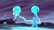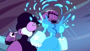 Water Garnet is a clone of Garnet. It has the ability to copy and repeat in almost-perfect time every move Garnet does, except for when Garnet punched the clone, dismounting its head. Due to being made out of water, it quickly reformed its face, and kicked the true Garnet into the sand. Its gauntlets are made of ice, making them strong like the real ones, or nearly as strong.