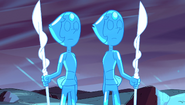 The Water Clones are antagonists in "Ocean Gem". They are water clones of the Crystal Gems, and were made and controlled by Lapis Lazuli. They were later destroyed by the vibrations from Steven's shield.
