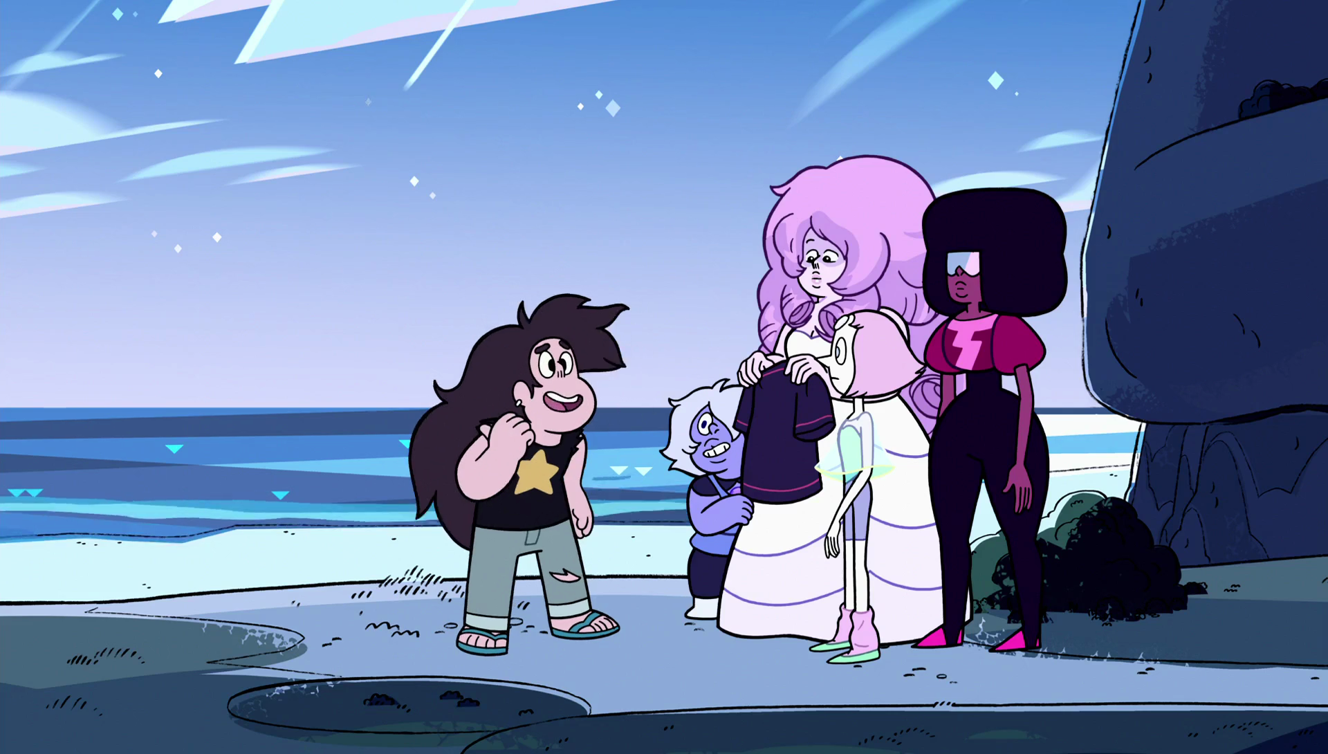 "The Ancient Kindergarten " • "Aquamarine Subdues Topaz " • "The Ball / Alone Together (Reprise) " • "Best Friends Forever " • "Blue Diamond's Onsen " • "Blue Diamond's Remorse " • "Confronting Yellow Diamond " • "The Crystal Gems VS Blue Diamond " • "Diamond Reunion " • "Encouragement (Steven & Pearl's Fusion Dance) " • "Everything's Pink " • "Falling! / Smoky Quartz " • "Family " • "Find My Phone " • "Garnet & Steven Get Painted & Chase a Cat " • "Going Deeper " • "Goodbye Lars / Home At Last " • "Healing Nephrite " • "Homeworld Waltz " • "I Don't Wanna Be Alone " • "I Miss You (She Took The Barn) " • "I Now Pronounce You Garnet " • "I'm Not Sorry " • "Inner Mind / I Am Pink Diamond " • "Integrity (Steven & Garnet's Fusion Dance) " • "Jungle Moon " • "Kevin Party " • "Lapis Leaves " • "Lars of the Stars " • "Lars... ? " • "Launching the Legs " • "The Legend of Rose Quartz " • "Lion's Secret " • "No One Can Know (Pearl & Pink Diamond's Secret) " • "Obsidian " • "Orbservatory " • "The Off Colors " • "Pearl... ? " • "The Pebbles " • "Pink Lars " • "The Question " • "Rainbow Quartz 2.0 / We Fused! " • "The Return Home " • "Rose & Pearl On Earth " • "Ruby Alone " • "Ruby's Decision " • "Sapphire's Anger " • "Shorty Squad in the Kindergarten " • "Steven Meets Pink Steven " • "Steven and the Wolf " • "Steven the Wedding Planner " • "Sunstone " • "The Train Home " • "The Trial: Pt. 1 (Green Zircon) " • "The Trial: Pt. 2 (Blue Zircon) " • "Unity (The Crystal Gems' Fusion Dance) " • "VROOM " • "Watermelon Steven's Adventure " • "When I Go Back " • "White Diamond " • "Yellow Diamond's Sauna " • "Yellow Diamond's Sorrow "